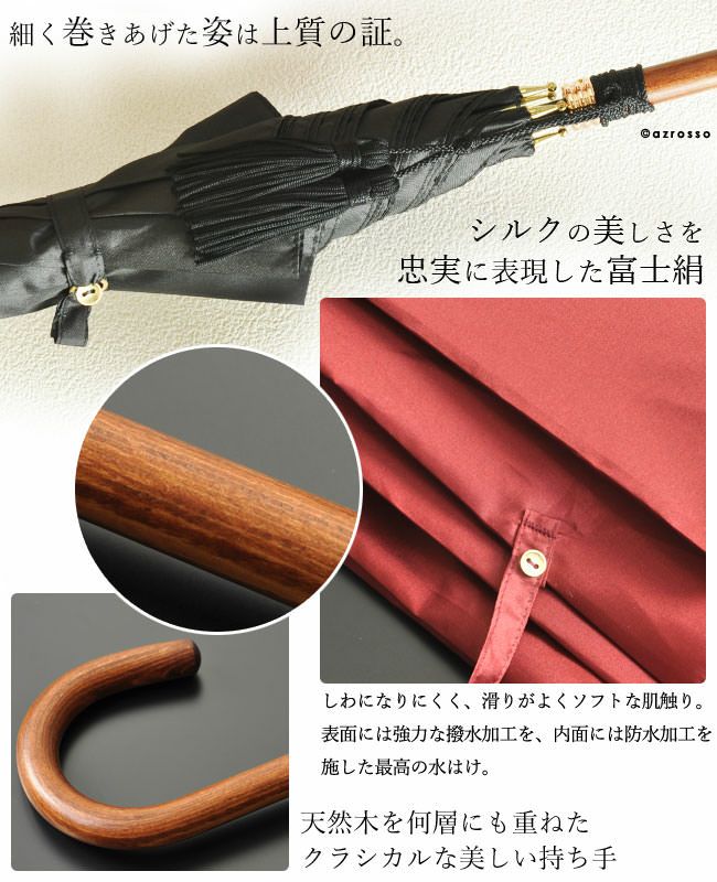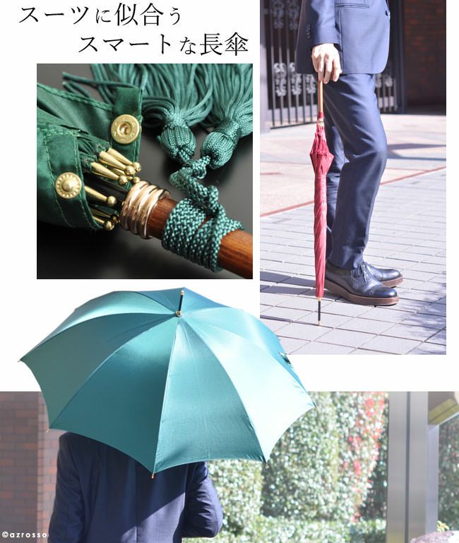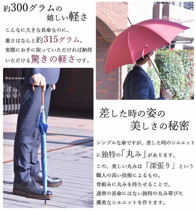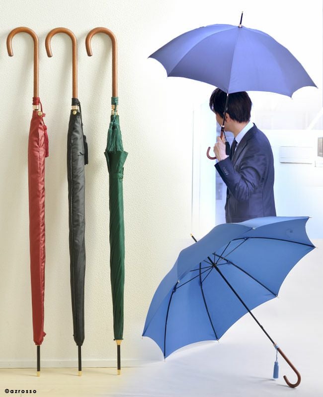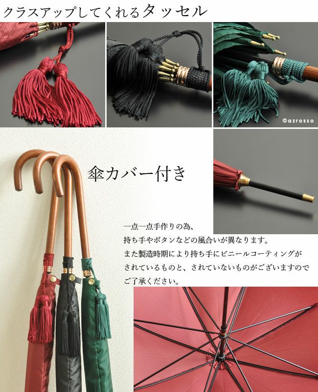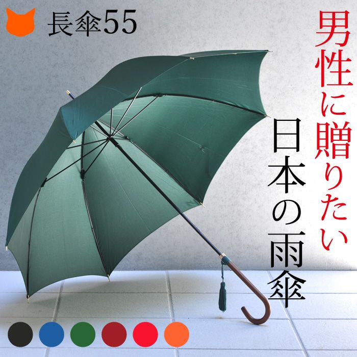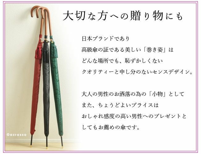 ワカオ 日本製雨傘 メンズ長傘 55cm 細巻き バンブーハンドル タッセル おしゃれ
