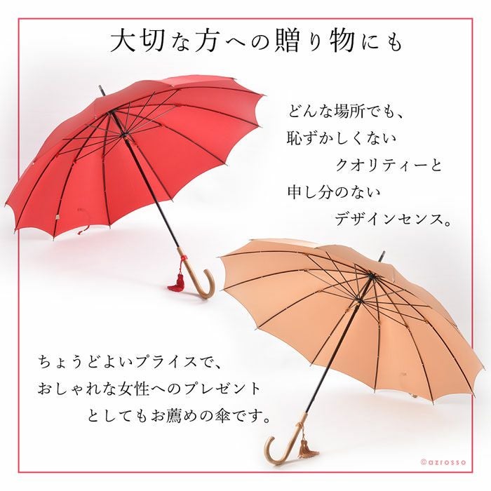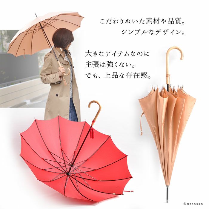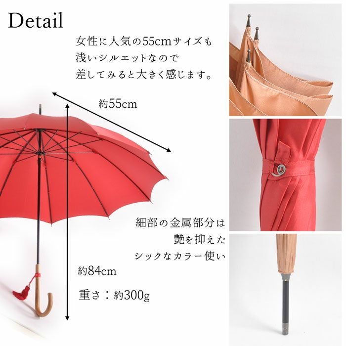 クラシカルで上品で、飽きを感じさせない美しいビジュアルででありながら実用面でも、とても使い勝手の良い雨傘となっております。