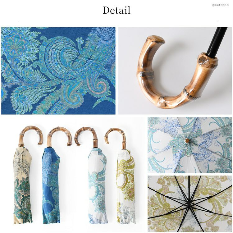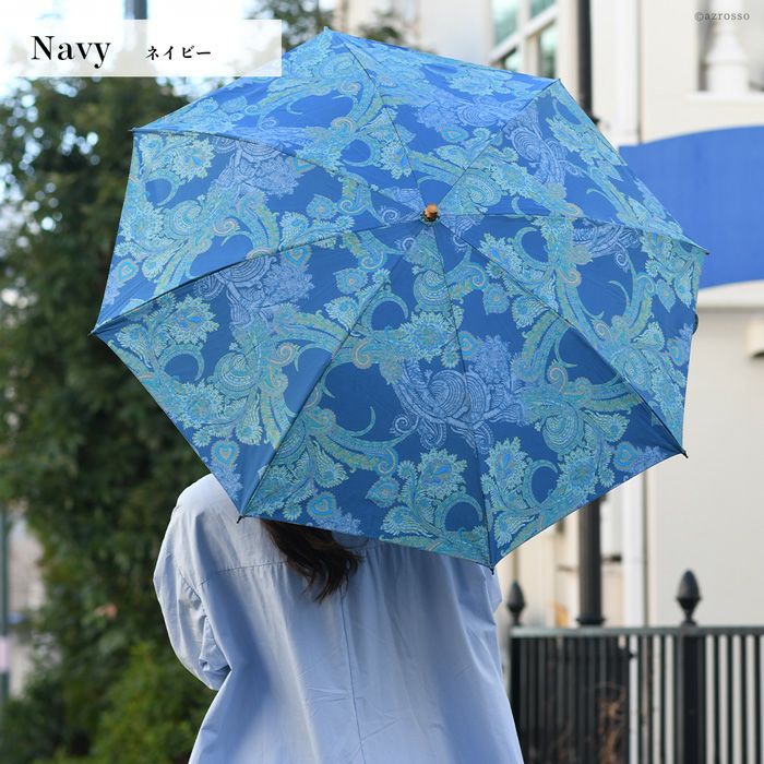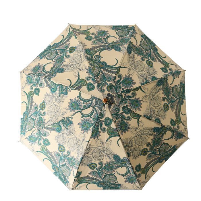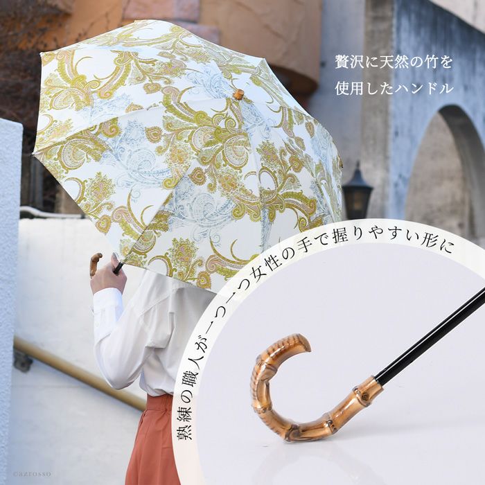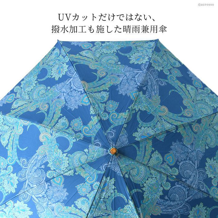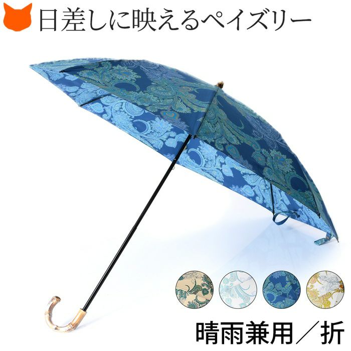 ワカオ 日傘 折りたたみ ペイズリー 日本製 WAKAO コットン 綿100 バンブーハンドル 寒竹 撥水加工