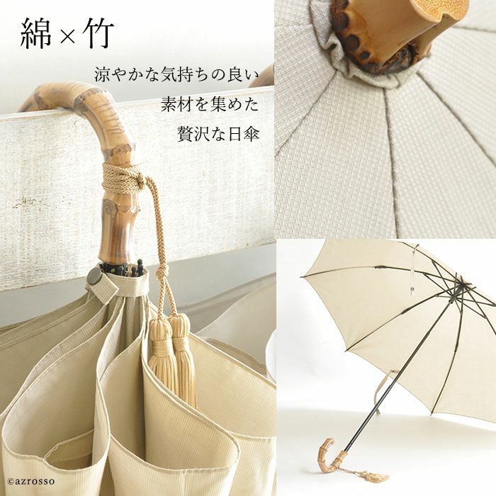 夏の素材として好まれる、通気性の良い爽やかな綿の持つ雰囲気は日傘にピッタリ。
