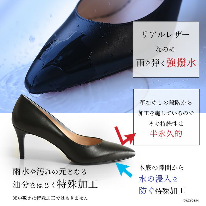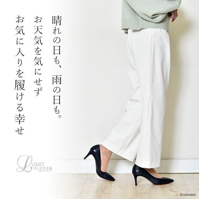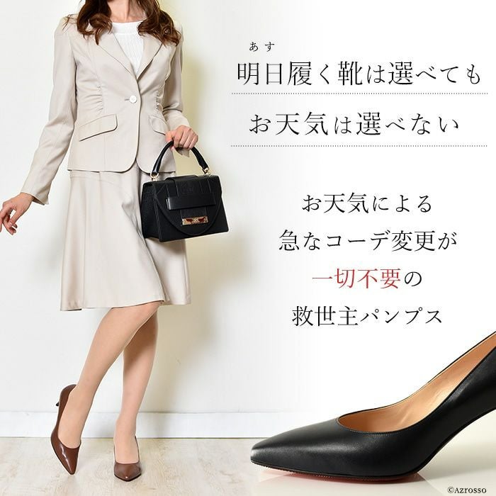 ポインテッドに近い、アーモンドトゥの7センチヒールパンプスは、主張しすぎない、ちょうどよい女性らしさ。お仕事に、お出かけに、特別な日にオールマイティに履けるスムースレザー。お気に入りの定番パンプスとして美脚をつくってくれるこの1足が、まさかレインパンプスの役割も果たすとは、パッと見ただけでは絶対にわからない!