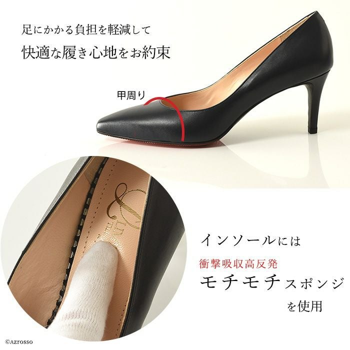 牛革をなめらかにつややかに仕上げたスムースレザー。高級感のあるレザーは普段の着こなしを上質にまとめてくれます。お仕事に、冠婚葬祭、式典などのフォーマルにも。センスのよいパンプスは足を通す女性の背筋も伸ばしてくれます。
