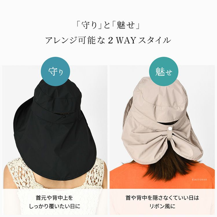 接触冷感 UVカット帽子 レディース 日よけ 首の後ろ 日焼け防止 つば広 たためる 洗える 涼しい 撥水 一級遮光 保冷剤ポケット付き