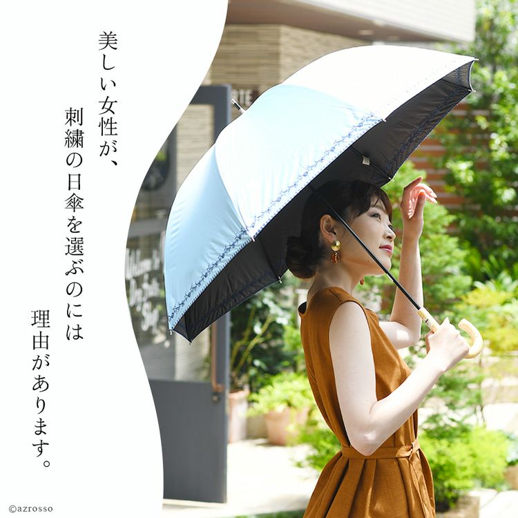 日傘 レース 長傘 刺繍 プチローズ 花柄 バラ 大判 ドーム型 ブラック ブルー サックス オフホワイト 白 マラガバリア