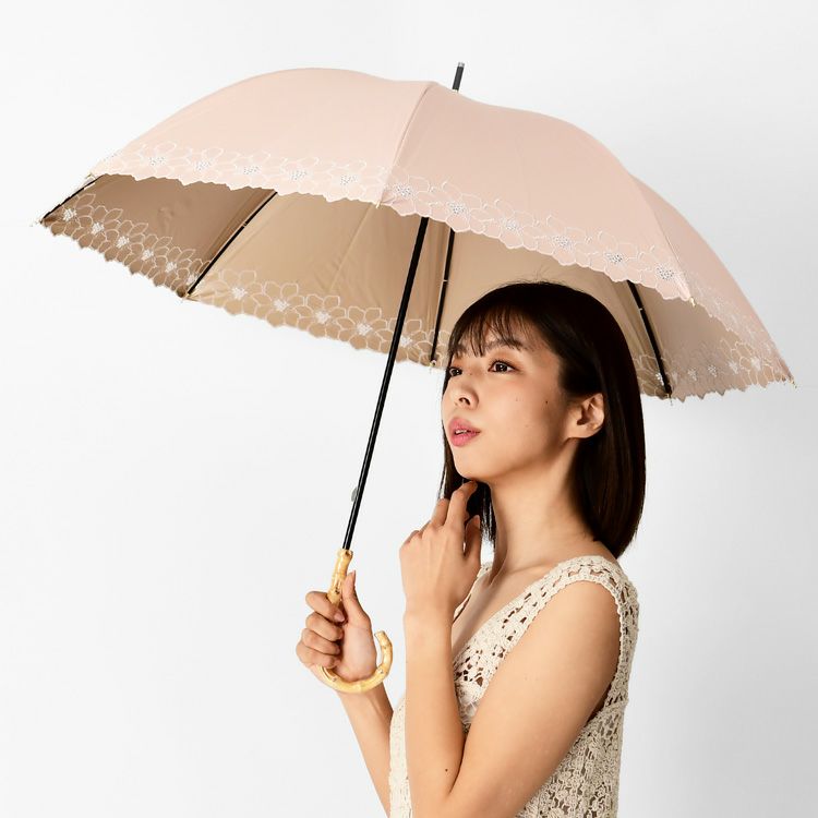 4. 刺繍 日傘 長傘 一級遮光 花柄 UVカット 遮熱 涼しい 軽量 50cm レディース グレースフラワー刺繍