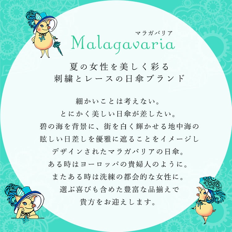 地中海の眩しい日差しを、優雅に遮ることをイメージしてデザインされた日傘ブランド 「Malagavaria(マラガバリア)」。
