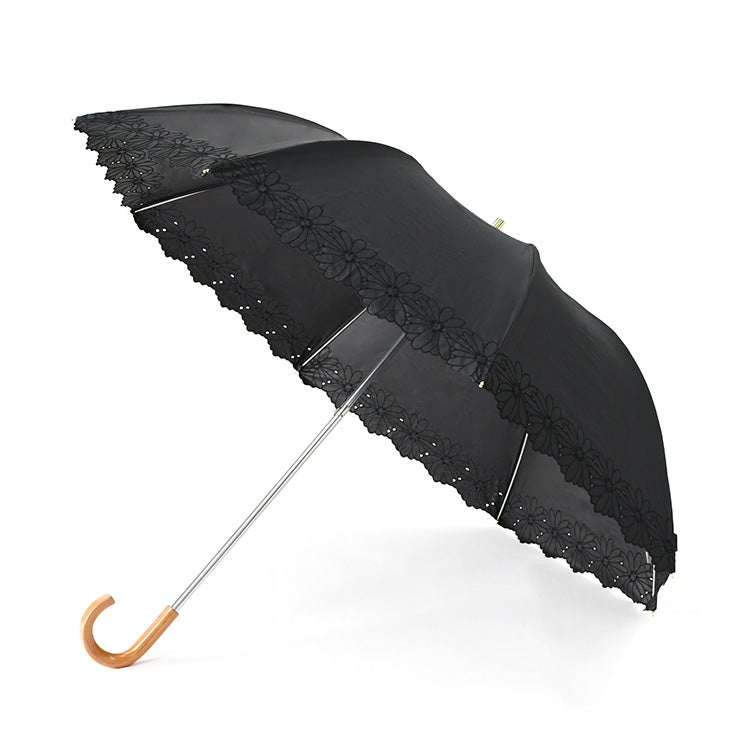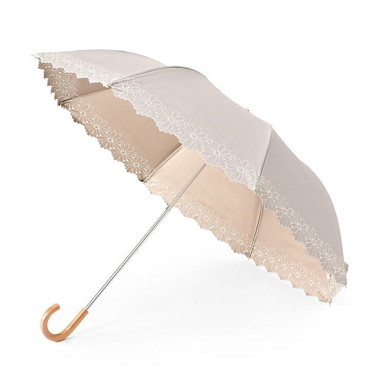 照り返しを防ぐ内側のコーティングは、あえて「ブラックではないカラー」を採用 。お顔周りをパッと明るく見せる美肌効果が期待でき、差すだけで表情まで美しく演出。繊細なサークル状のフラワー刺繍が、上品で落ち着いた華やぎを添えます 。透け感のある刺繍の美しさは、日差しの下でさらにシックに映え、周囲と差がつく一品です 。普段着はもちろん、着物や浴衣などの和装、結婚式などのフォーマルな装いにも完璧にマッチ。