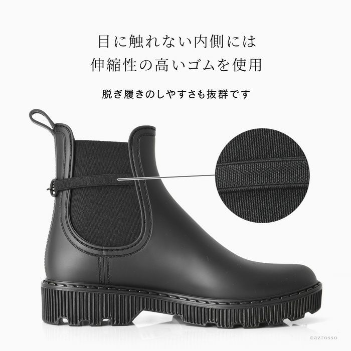 ▼特徴:レインブーツ|サイドゴアブーツ|チェルシーブーツ|雨靴|長靴|歩きやすい|ローヒール|痛くない|履きやすい|ショート丈|レインシューズ