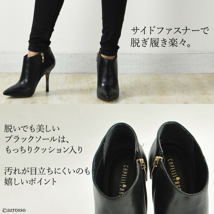 ▼特徴:ハイヒール|ポインテッドトゥ|美脚|細ヒール|ブーティ|本革|衝撃吸収インソール
