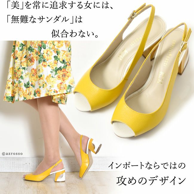 日本には真似できない美バイカラーの太ヒールレザーサンダル CAPELLI ROSSI(カペリロッシ) 歩きやすい 疲れない 痛くない 安定感抜群 夏のカジュアルに イエロー×ホワイト オレンジ×ベージュ グリーン×グレー チャンキーヒール サンダル レザー ストラップ 幅広 本革 太ヒール レディース ハイ ヒール 6cm ブラジル ブランド 小さいサイズ 22cm 大きいサイズ 25cm