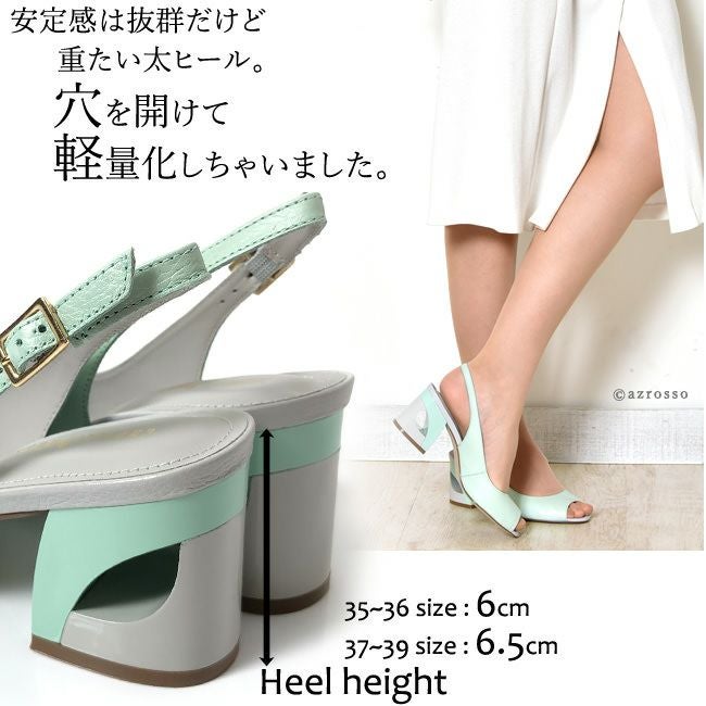 チャンキーヒールは、カカト全体でしっかりと支えてくれるので、ハイヒールであっても、安定感があって、歩きやすいと人気ですが、太ヒールの分、重くなってしまうという、欠点があります。その欠点を補うべく、ヒールの真ん中に穴を開けて軽量化を図ったわけです。