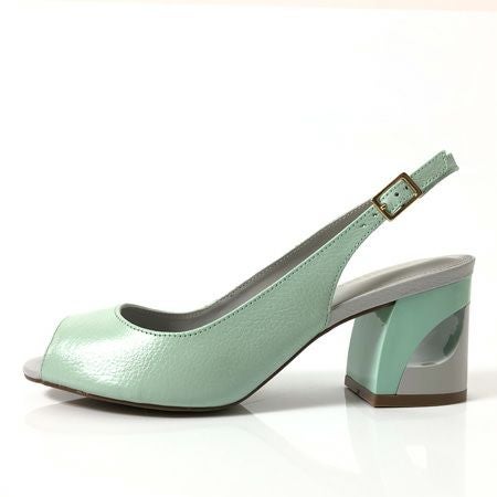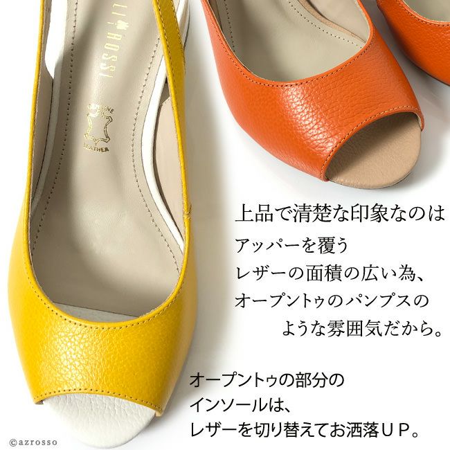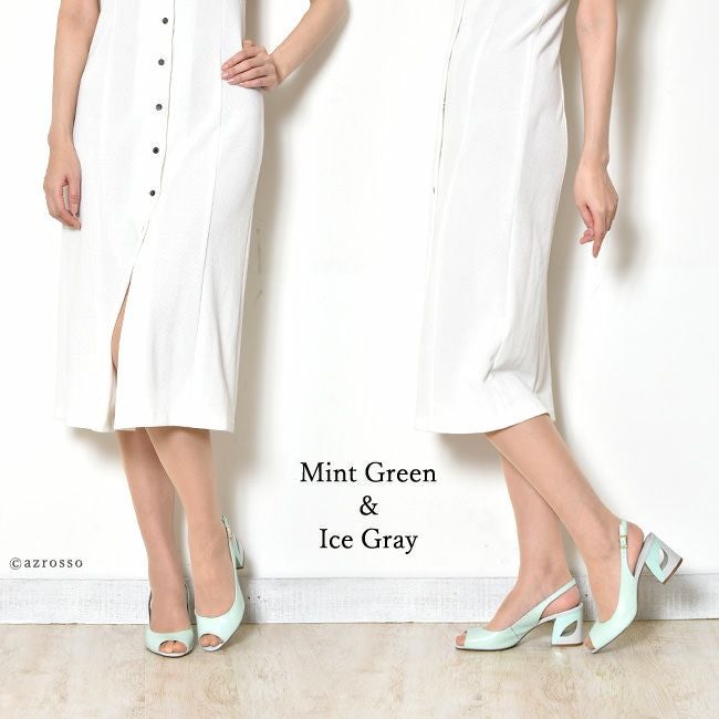 サンダルと言うより、オープントゥのパンプスに近い足を覆う面積の広いアッパーラインは、上品で清楚な印象。