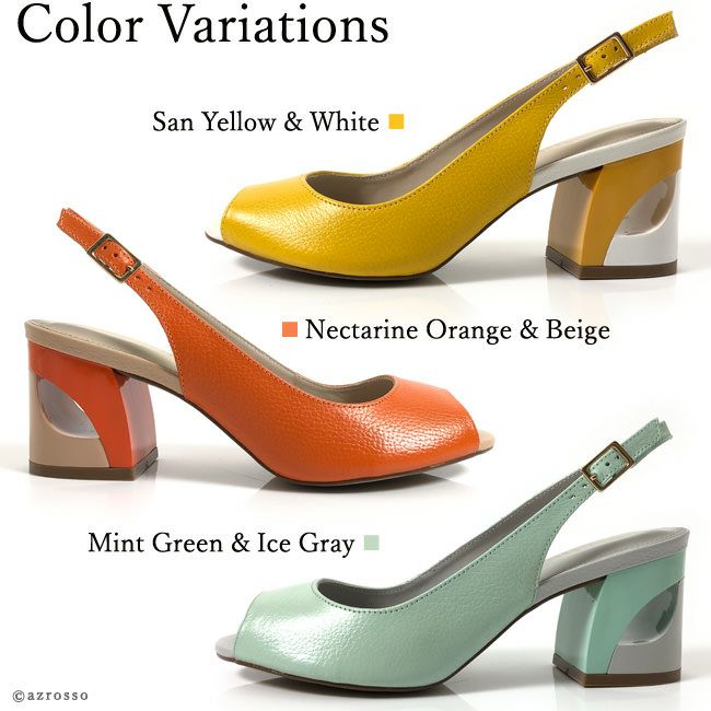 デザインとして目を惹く穴の開いた太ヒールに、イエロー、オレンジ、グリーンと言った鮮やかで、楽しい、夏の色を纏ったバイカラーのレザーサンダルがブラジルから届きました。 この穴は、ビックリすることに、重たいのが欠点だったチャンキーヒールを軽くするためにデザインされたモノ。チャンキーサンダルの、歩きやすさ、安定感はそのままなので、リゾートへの旅行、デート、お買い物、海や、プールといった夏のお洒落をしてのお出かけにピッタリ。履きやすいから普段使いにも。ちょっとそこまでのカジュアルもカッコ良くキメてくれます。