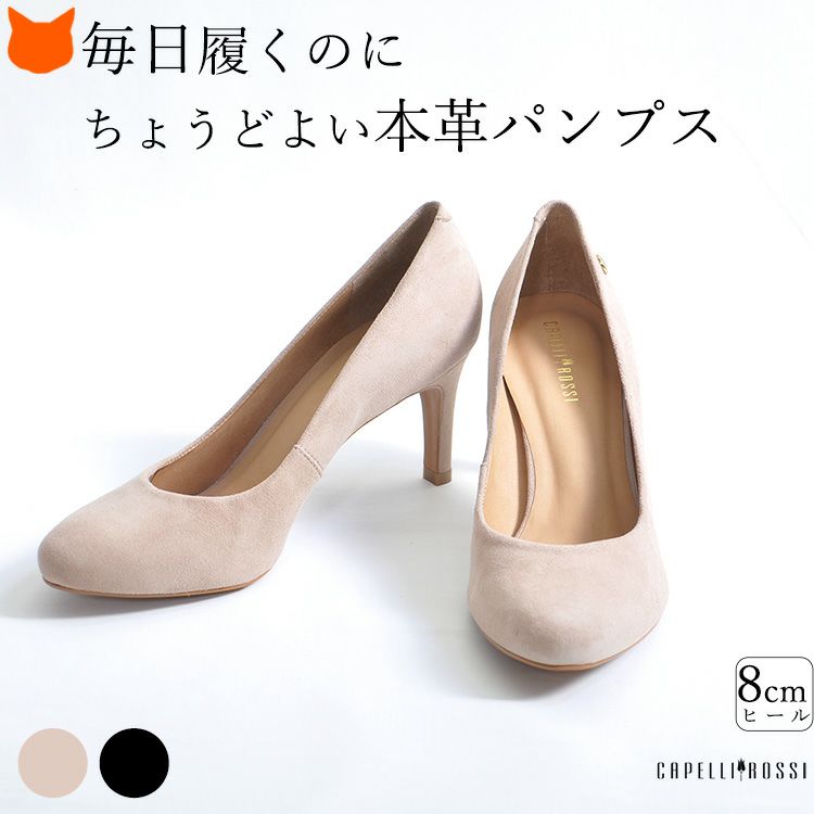 ブラジルブランド CAPELLI ROSSI 本革 美脚 スエード パンプス アーモンドトゥ 甲 幅広 ヒール8cm カペリロッシ