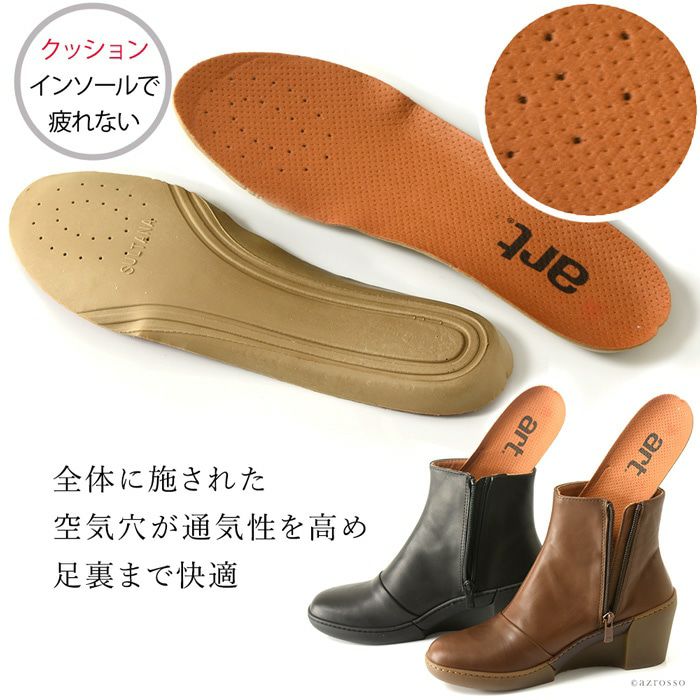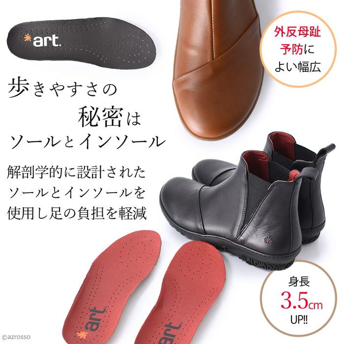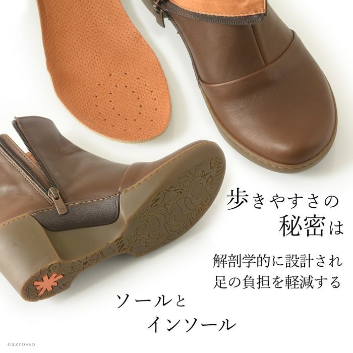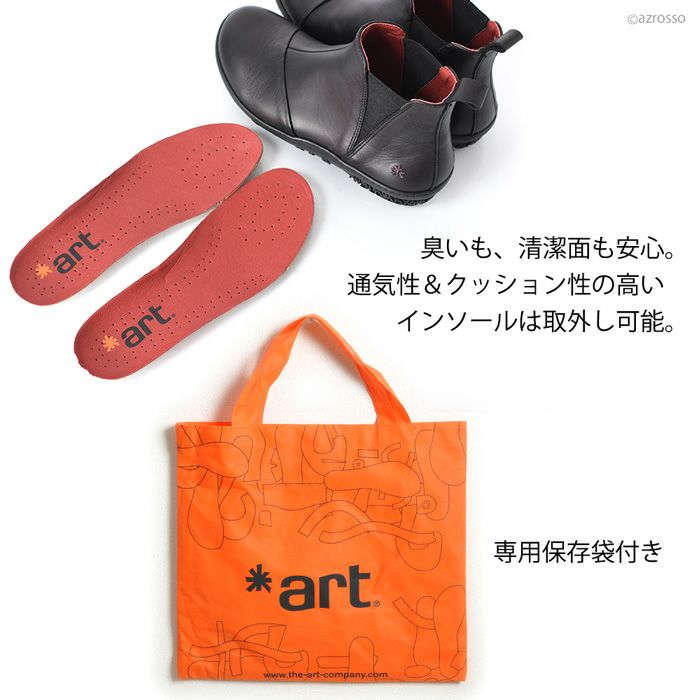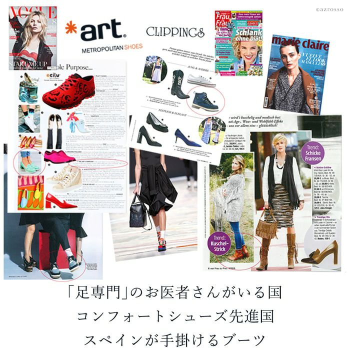 コンフォートシューズのメッカ、スペインにおいて、40年以上快適な靴を作り続けるファクトリーが1995年に立ち上げたブランド。クリエイティブで、かっこよく、ストーリー性のある、「Art(芸術)」という名で洗礼を受けたような、これまでにない靴をつくりだすことをコンセプトに掲げ、現在、Artの靴は39か国で販売されている。都会的なデザインで、かつ履きやすい快適な靴は、発売当初から、若い世代から驚異的な人気を博した。レザーはイタリア製かスペイン製であり、化学薬品は使用していない。ブランド独自が開発した「COMFORT SOLE SYSTEM」は人間工学に基づいており、足の健康をとことん考慮したつくり。足が疲れやすい、痛くならない、かつおしゃれな靴を求めている女性におすすめのコンフォートシューズブランド。