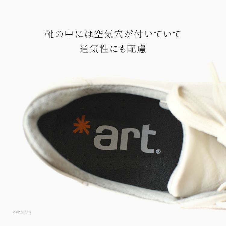 コンフォートシューズのメッカ、スペインにおいて、40年以上快適な靴を作り続けるファクトリーが1995年に立ち上げたブランド。クリエイティブで、かっこよく、ストーリー性のある、「Art(芸術)」という名で洗礼を受けたような、これまでにない靴をつくりだすことをコンセプトに掲げ、現在、Artの靴は39か国で販売されている。都会的なデザインで、かつ履きやすい快適な靴は、発売当初から、若い世代から驚異的な人気を博した。レザーはイタリア製かスペイン製であり、化学薬品は使用していない。ブランド独自が開発した「COMFORT SOLE SYSTEM」は人間工学に基づいており、足の健康をとことん考慮したつくり。足が疲れやすい、痛くならない、かつおしゃれな靴を求めている女性におすすめのコンフォートシューズブランド。