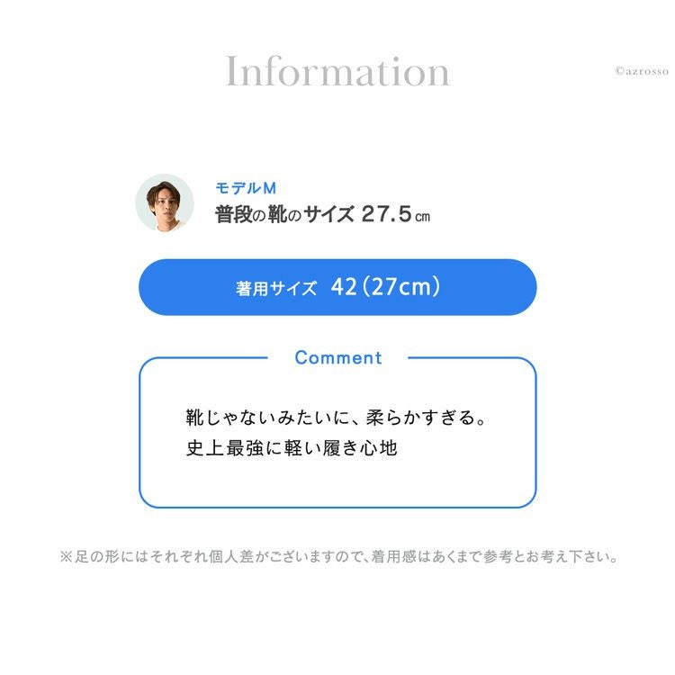 ※足の形にはそれぞれ個人差がございますので、着用感はあくまで参考とお考え下さい。