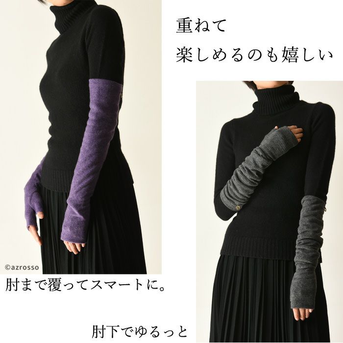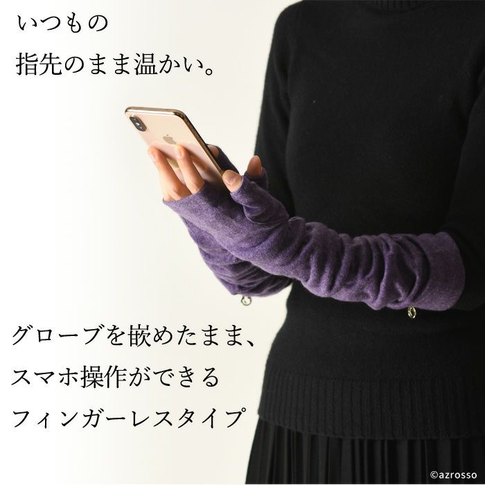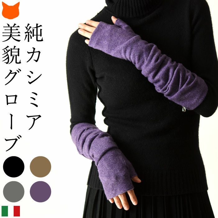カシミヤ 100 アームカバー フィンガーレス グローブ イタリア製 手袋 黒 ブラック ブラウン グレー パープル