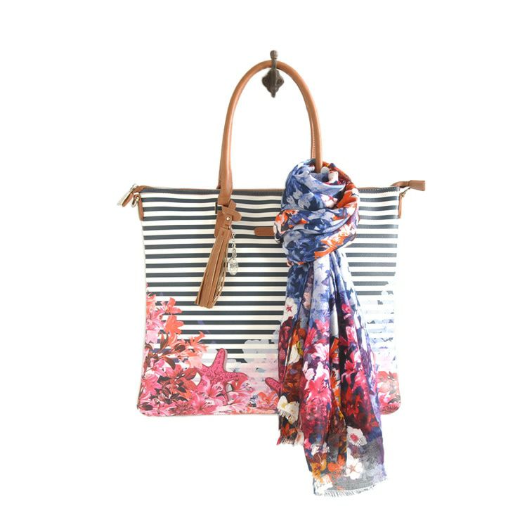 ▼特徴:ストール付き|トートバッグ|2way|ショルダーバッグ|斜め掛け|肩掛け|A4収納|大容量|沢山入る|花柄|ボーダー|ドット|総柄|軽い|軽量|マザーズバッグ|スクエア