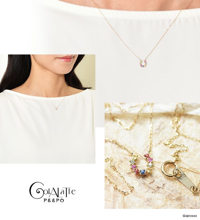 華奢でカラフルなマルチサファイアが美しいジャパンブランドネックレス。人気の馬のひづめ型の小さめでシンプルなゴールドペンダントは普段使いは勿論 結婚式 パーティや彼女への 誕生日 記念日 のプレゼントに/ 馬蹄 ネックレス マルチカラー サファイア ゴールド 日本製 アクセサリー 小ぶり 天然石