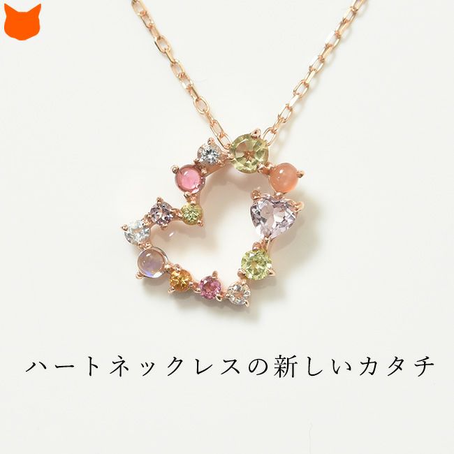 パステルトーンのストーンを贅沢に散りばめた新しいハートネックレス。歴史ある日本の宝石の街、山梨の高品質ハンドメイドジュエリーを、驚きのプライスでお届け。 ハート マルチカラー ネックレス ピンクトルマリン ペリドット ピンクアメジスト アクアマリン ロイヤルブルームーンストーン シトリン オレンジムーンストーン k10 ゴールド コタラッテピーポー 日本製 誕生石 プレゼント