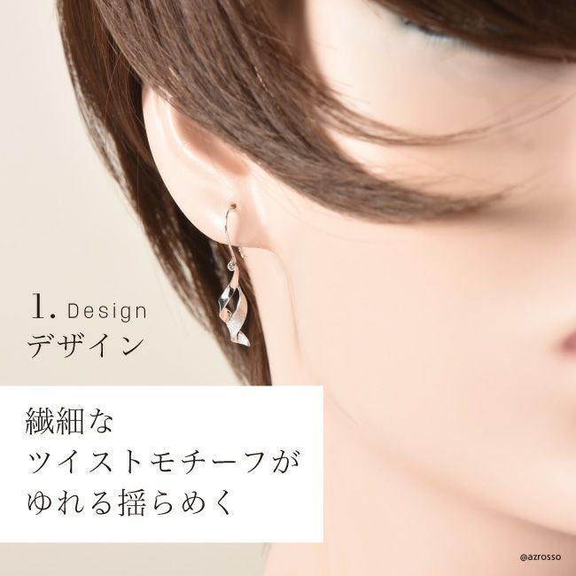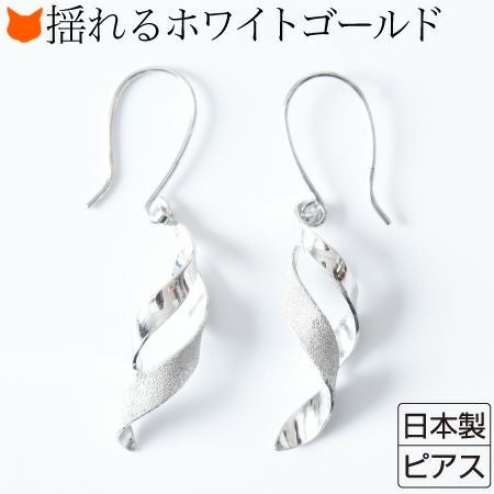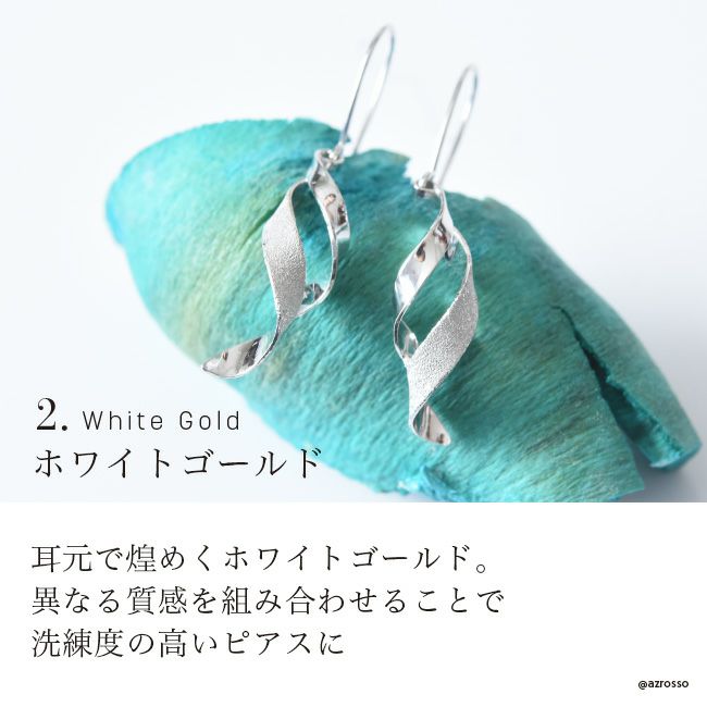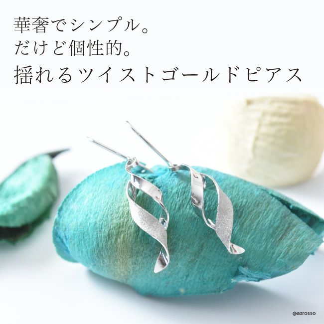 ホワイト ゴールド ピアス ツイスト 揺れる シンプル フックピアス コタラッテピーポー 日本製 レディース