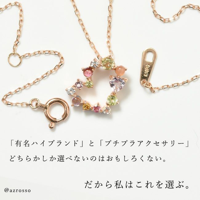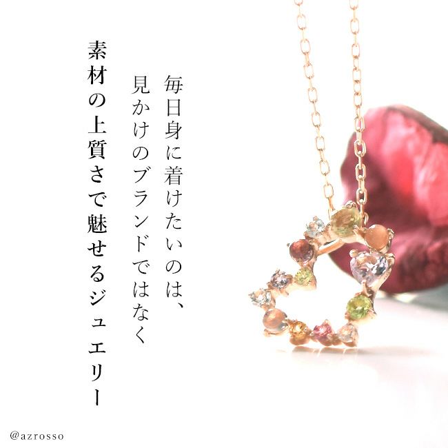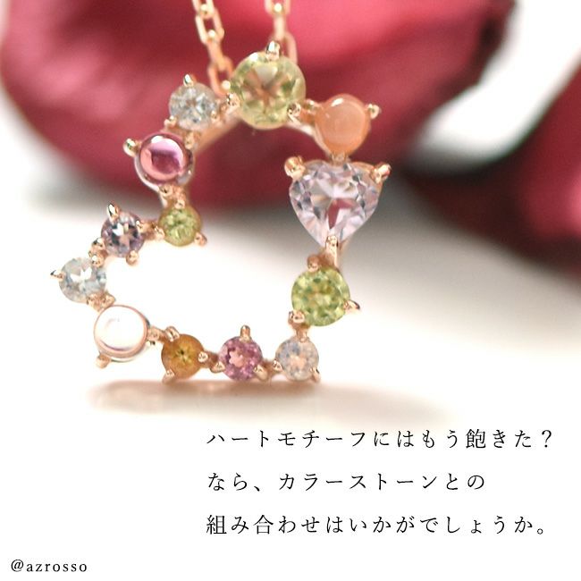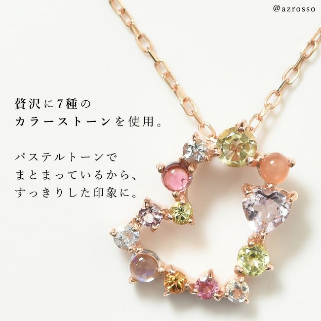ハート マルチカラー ネックレス ピンクトルマリン ペリドット ピンクアメジスト アクアマリン ロイヤルブルームーンストーン シトリン オレンジムーンストーン k10 ゴールド コタラッテピーポー 日本製 誕生石 プレゼント
