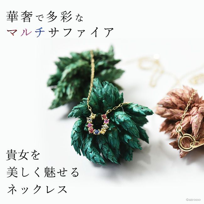 馬蹄 ネックレス マルチカラー サファイア ゴールド 日本製 アクセサリー 小ぶり 天然石