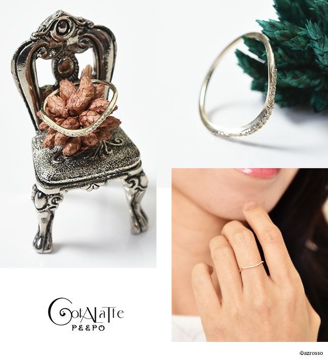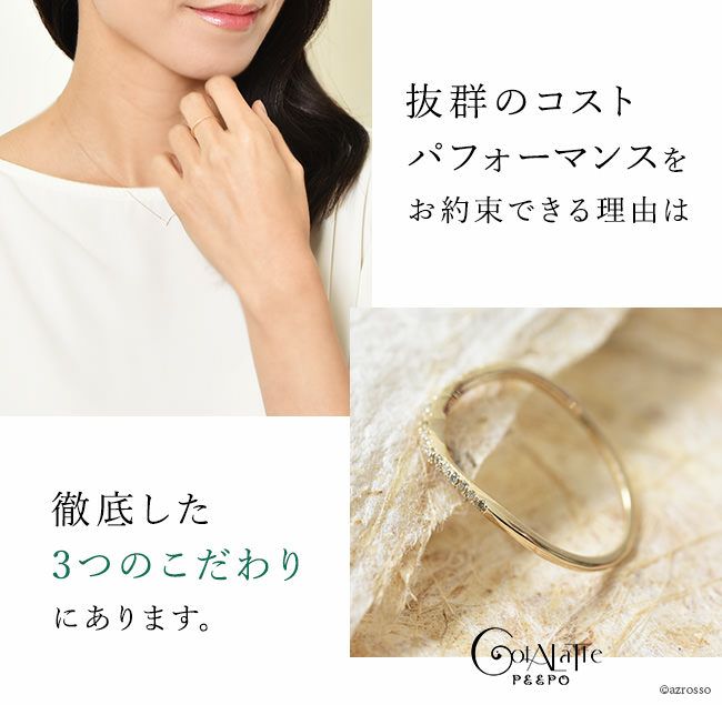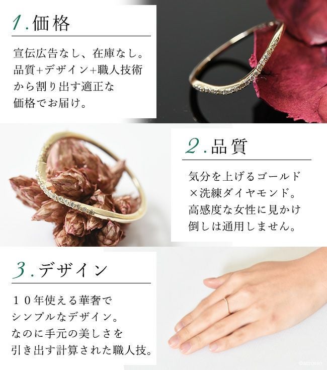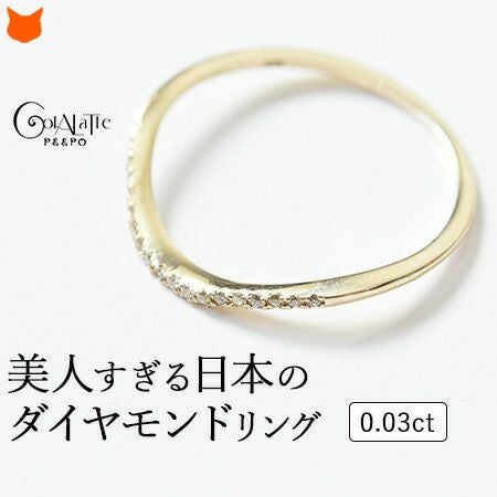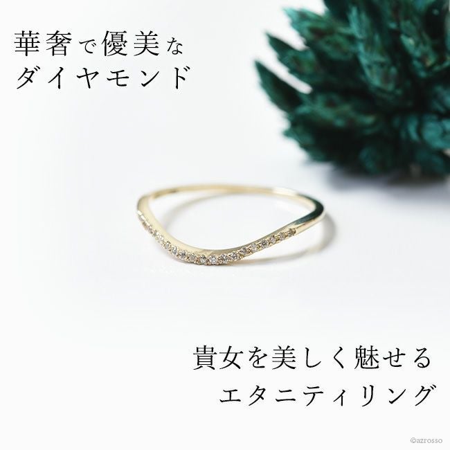 ダイヤモンド ハーフ エタニティ リング ウェーブ ゴールド 日本製 アクセサリー 華奢 宝石