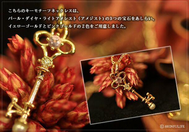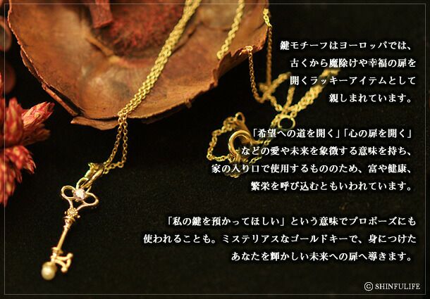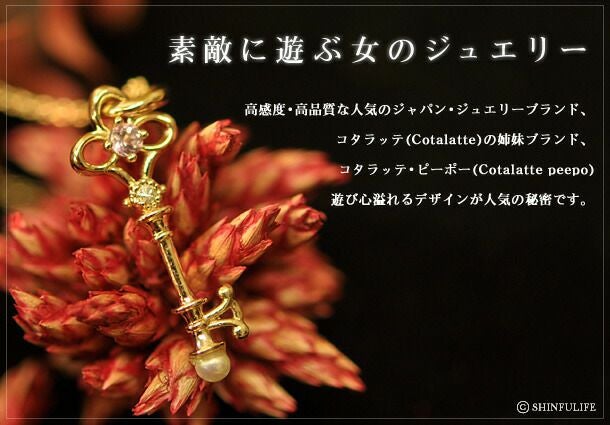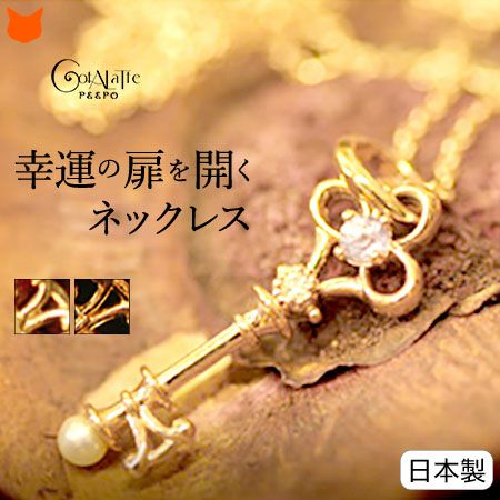 アンティークキー・ゴールドネックレス(10K) コタラッテの姉妹ブランド Cotalatte peepo(コタラッテ・ピーポー) 心を開き希望へ導くキーモチーフデザインネックレス/ゴールド/ピンクゴールド/イエローゴールド/ペンダント/鍵/ダイヤ/パール/アメジスト