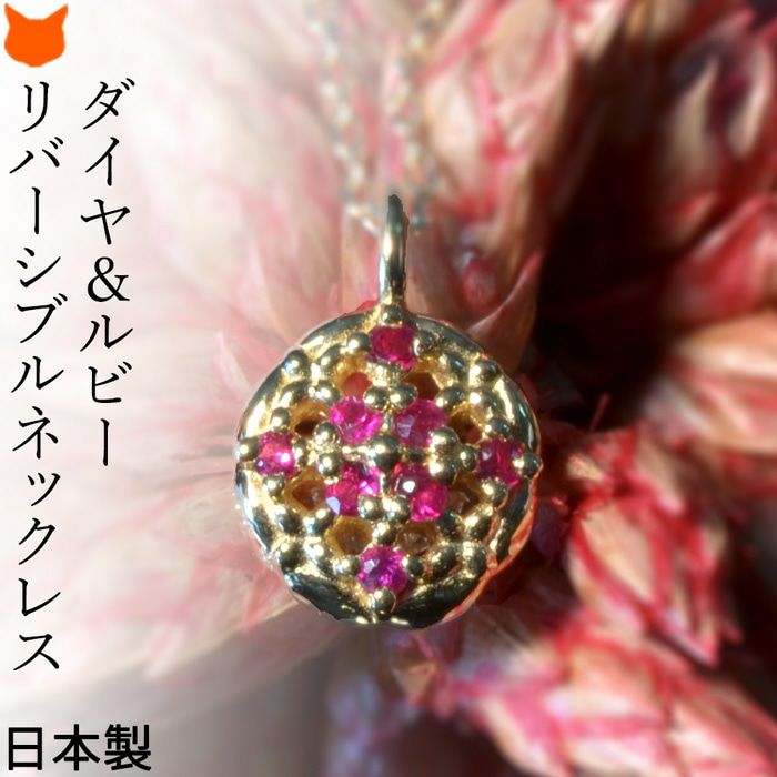 ダイヤモンド・ルビー リバーシブル プチネックレス/Cotalatte/ゴールド/ダイアモンド/ルビー/ネックレス/ペンダント/ダイヤモンドネックレス/ルビーネックレス/ゴールドネックレス/プレゼント/一粒/0.1ct/ジュエリー/日本製/シンプル