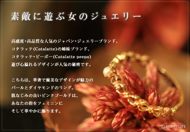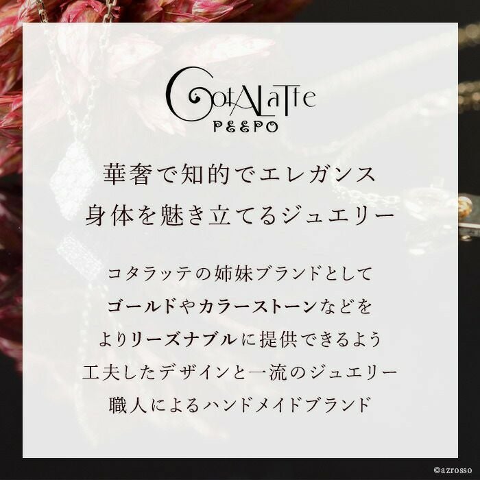 お誕生日・母の日・結婚記念日など各種記念日のプレゼントとしても人気のジュエリーは、デザインのお洒落度だけでなく、毎日身に付けて、かつ末永く愛用できる品質であることも重要。Cotalatte Peepo(コタラッテ ピーポー)は品質・技術ともにレベルが高く、大切な家族やパートナーへの贈り物としてもおすすめのブランドです。