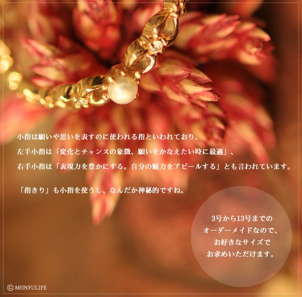 「ジュエリーの価値は、女性を美しく見せること」のみを追求し、上質素材を用いて、高度な技術で作り出された洗練ジュエリーの数々は、繊細にして華麗。女性をより美しく引き立てる極上のエッセンスとなります。普段使いからフォーマルシーンまで幅広くお使いいただけます。ハンドメイドだから可能な華奢で遊び心のあるディテールを、直に感じられる贅沢を味わってください。