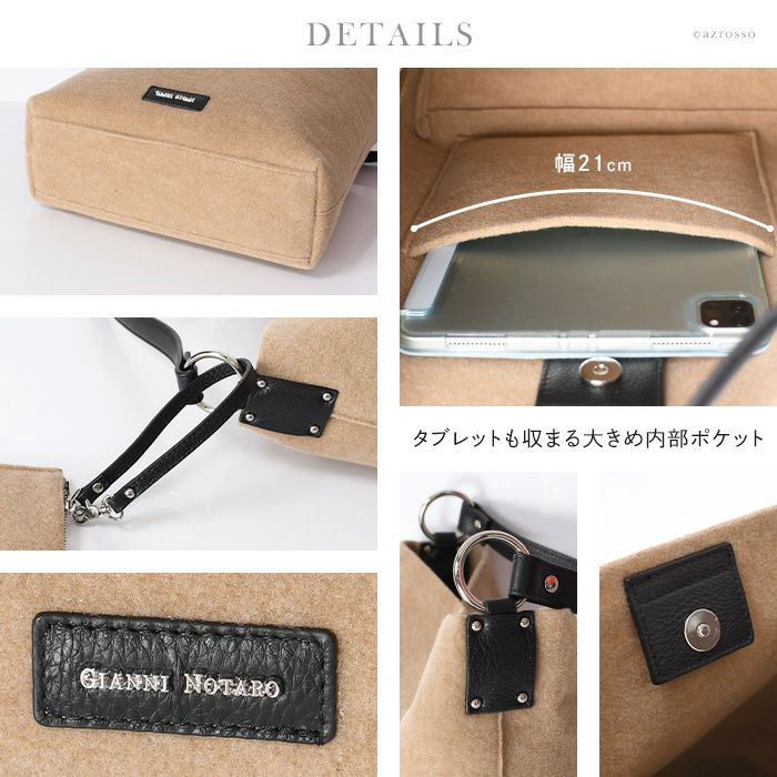 イタリア製 トートバッグ A4対応 500g以下 軽量 ブランド ジャンニノターロ GIANNI NOTARO 縦型 ポーチ付き