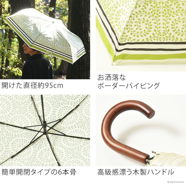 クールでかっこいい大人の女性の為の雨傘ブランド「Lluvia rain(ルビアレイン)」の幾何学模様のような葉の柄折り畳み傘「リーフボーダー」 リーフ ボーダー 折りたたみ傘 大判 軽い レディース 女性用 簡単 開閉 丈夫 サテン生地 おしゃれでスタイリッシュな雨傘はギフトにもおすすめ