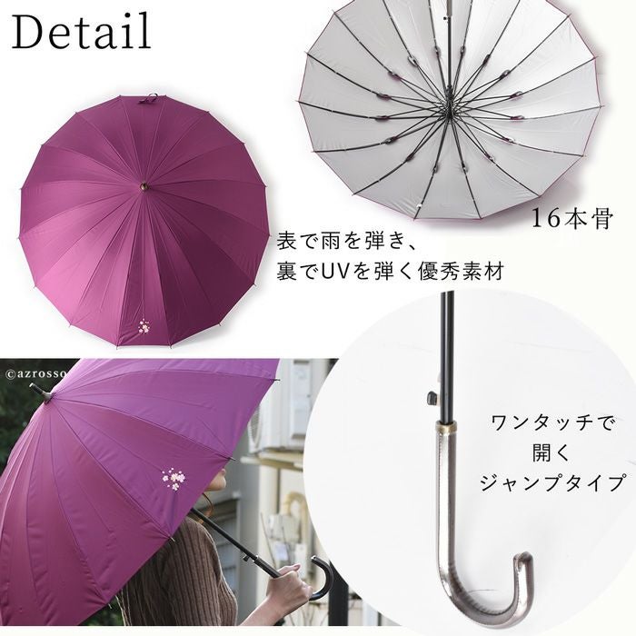▼特徴:16本骨 かわいい レディース 桜 さくら ジャンプ傘 55cm 晴雨兼用傘 UV99%カット 遮光 ワンタッチ