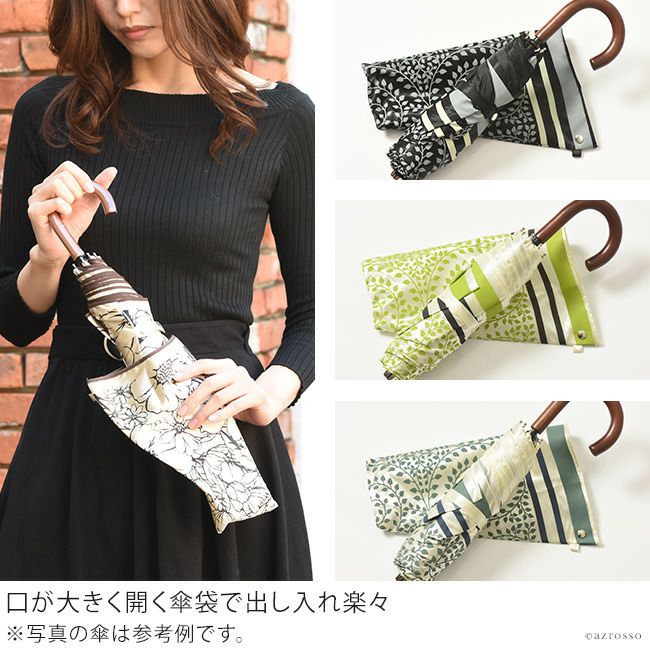 リーフ ボーダー 折りたたみ傘 大判 軽い レディース 女性用 簡単 開閉 丈夫 サテン生地 おしゃれでスタイリッシュな雨傘はギフトにもおすすめ