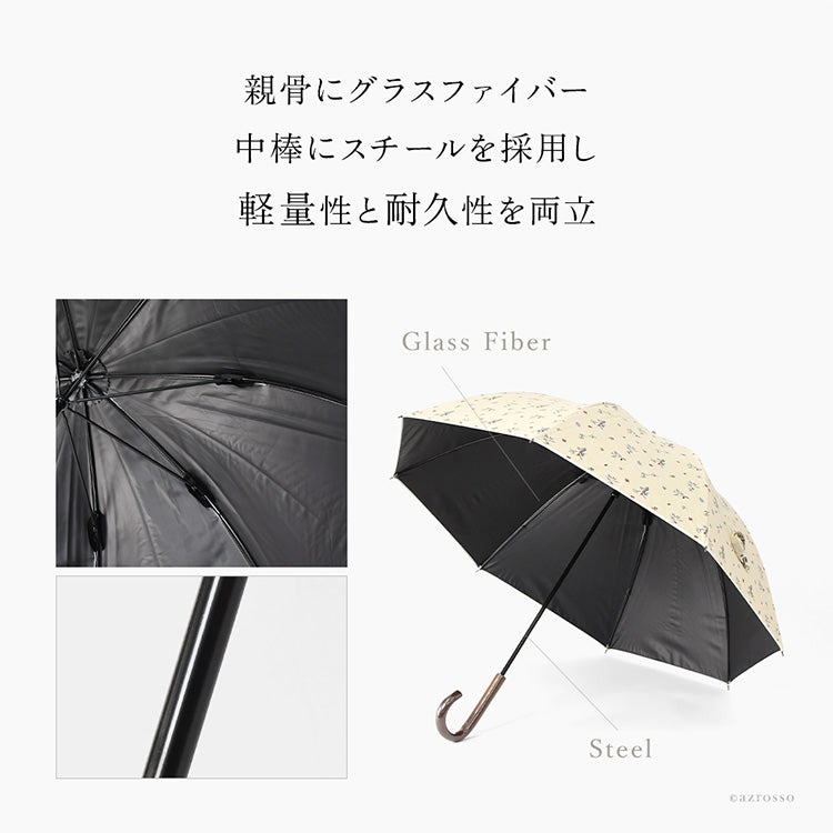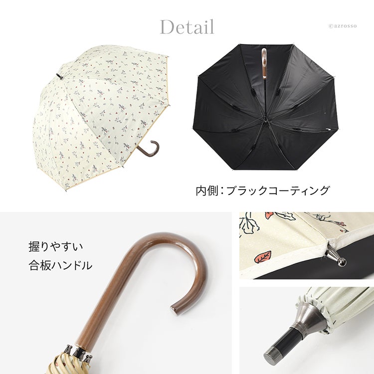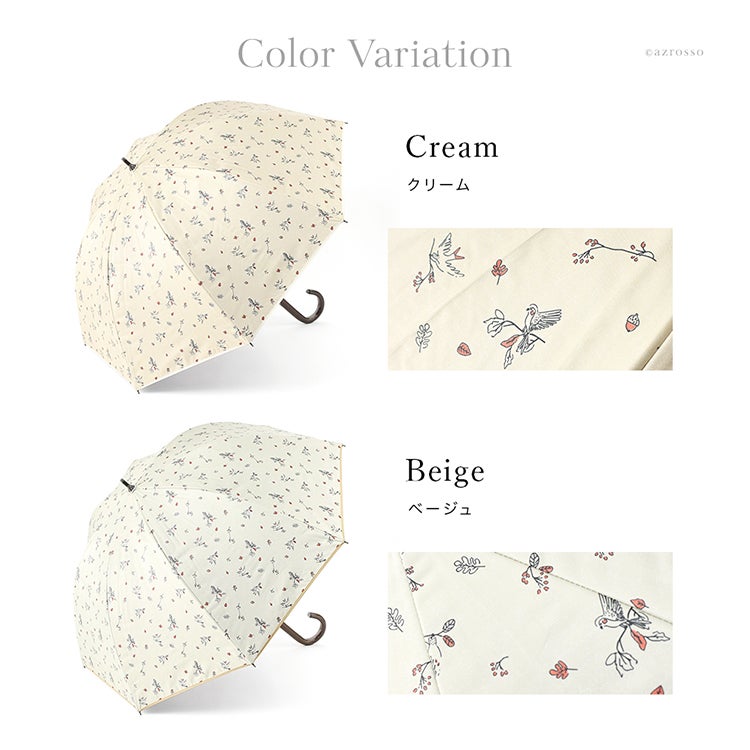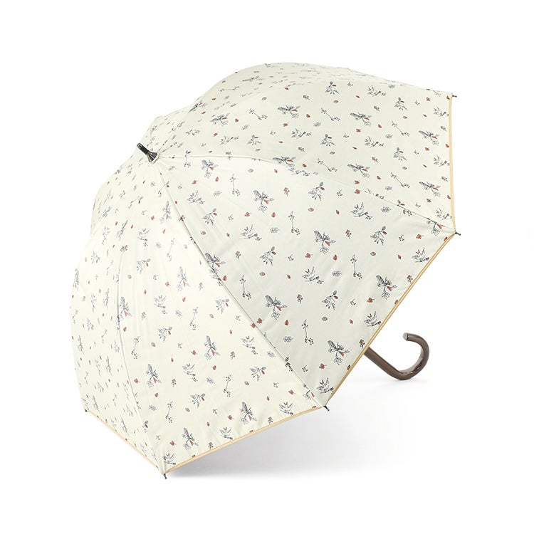 ▼特徴:バード 木の実 柄 コンパクト おしゃれ 上品 エレガント 洗練 安全ロクロ 丈夫 タフ 折れにくい 紫外線対策 猛暑対策 日よけ リーズナブル