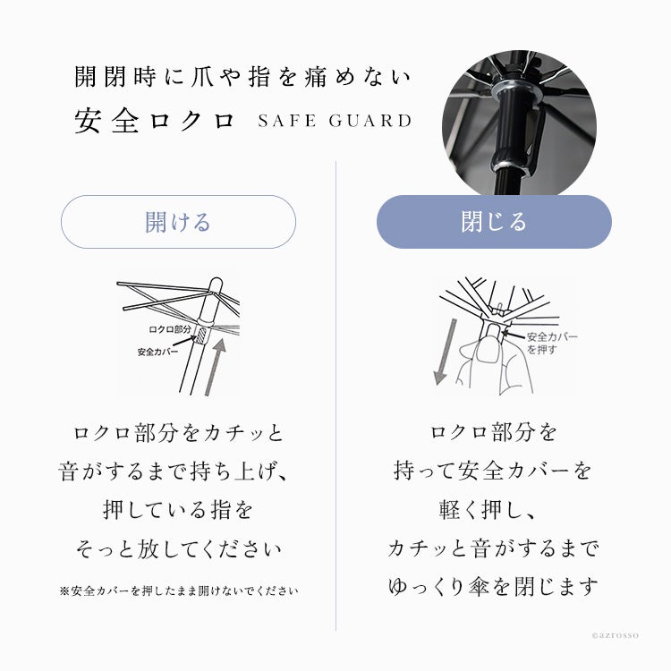 ・開閉のときに指を挟みそうで怖いというお悩みがあり、安心して使える「安全ロクロ」仕様の傘をお求めの方