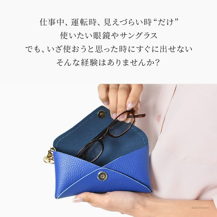 イタリア製 メガネケース 本革 おしゃれ ストラップ付き 大人 かわいい ブランド スリム バッグチャーム ポーチ 薄型 眼鏡ケース【通常ネコポス配送】