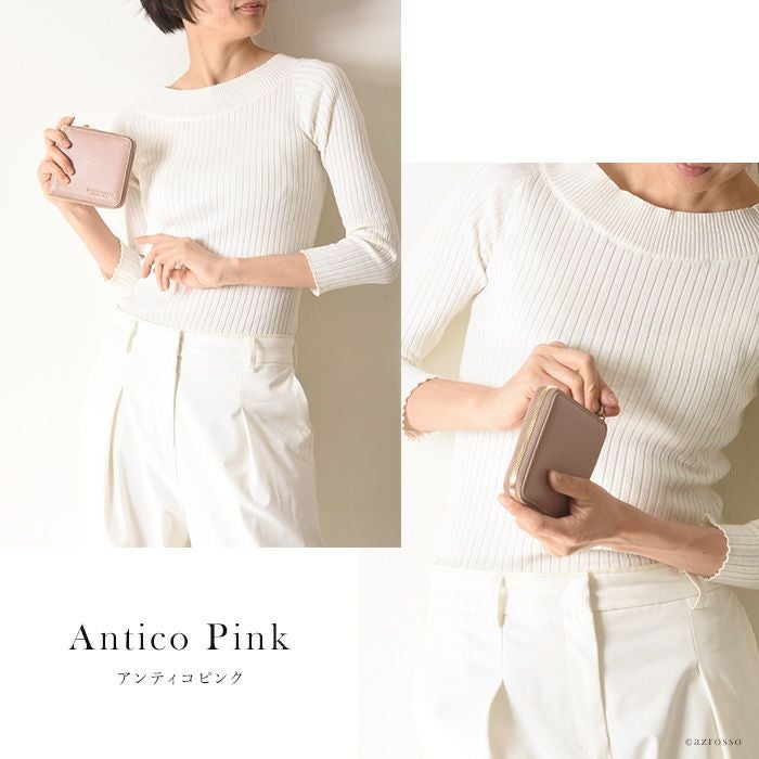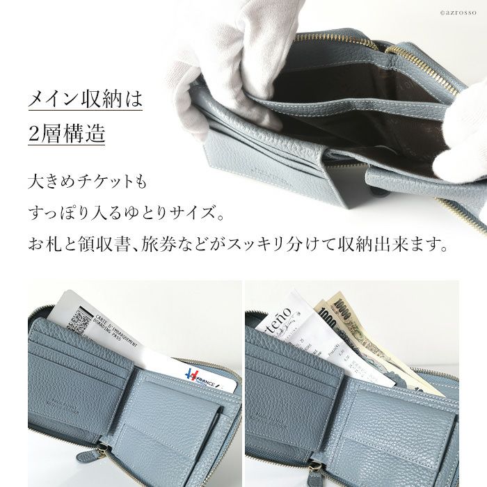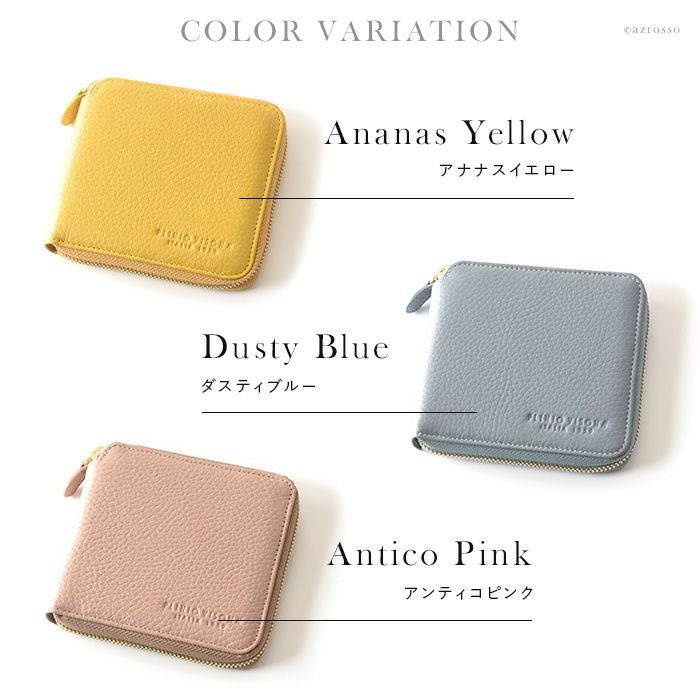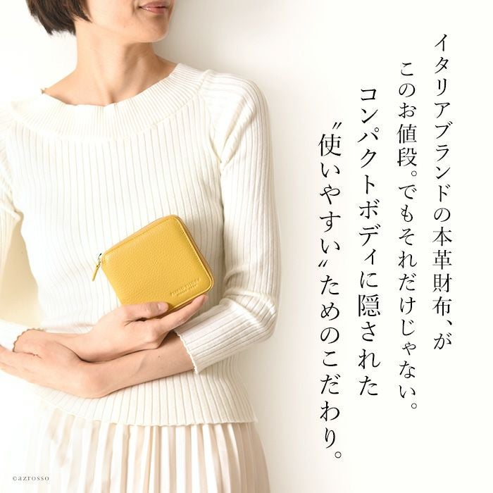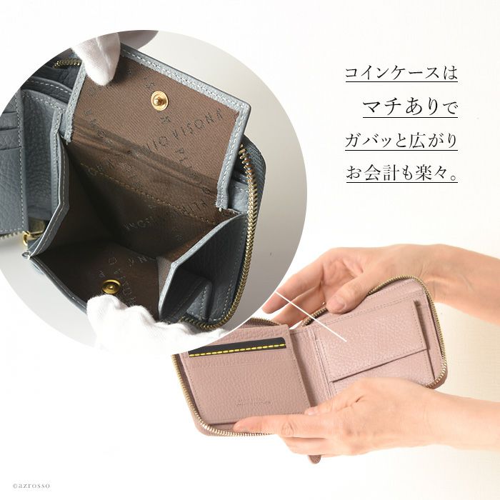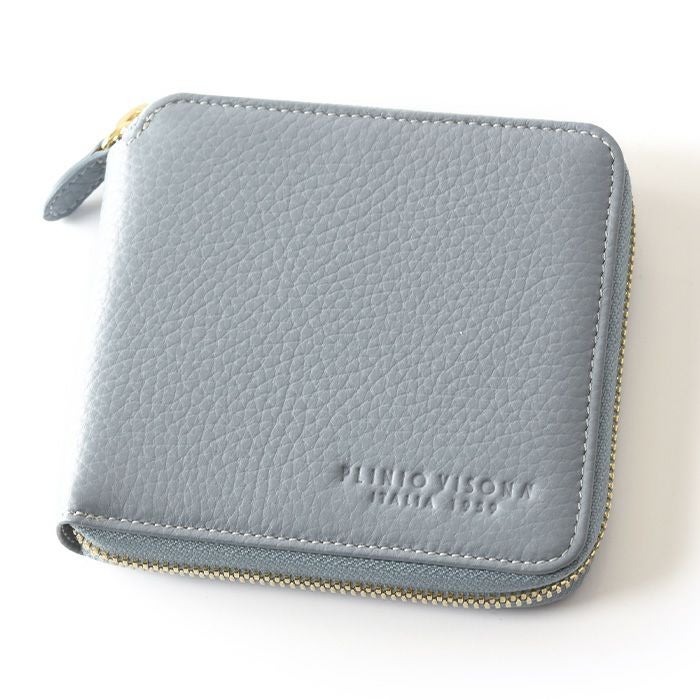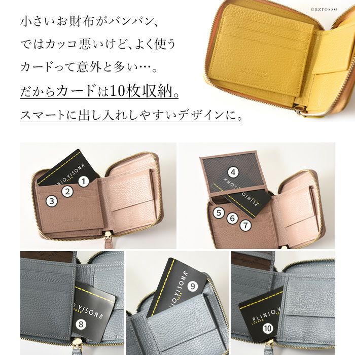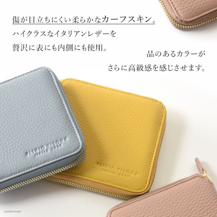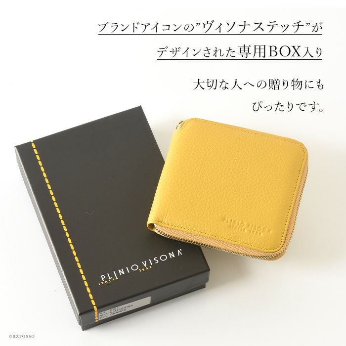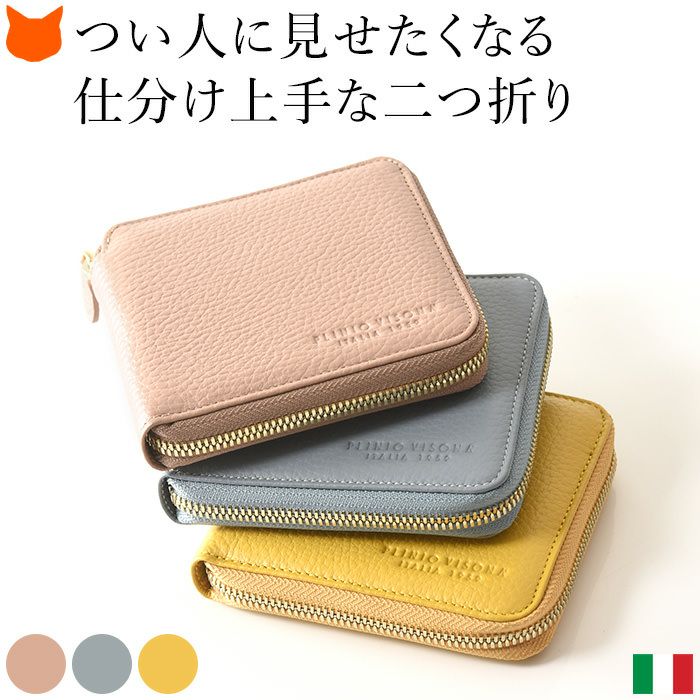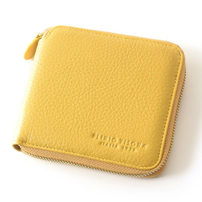 本革 二つ折り財布 レディース ラウンドファスナー 小銭入れ カード収納 多い イタリア製 ブランド PLINIO VISONA (プリニオ ヴィソナ)黄色 イエロー ブルー ピンク