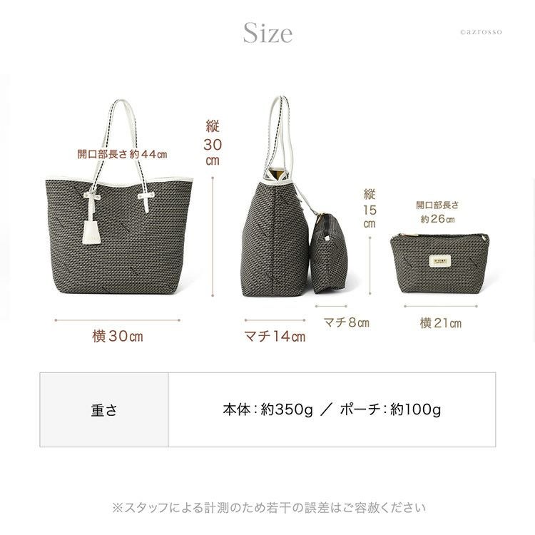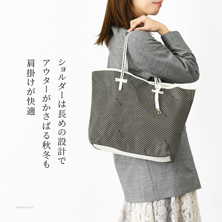 ショルダーバッグタイプのA4トートなので、アウターがかさばる秋冬も肩がけしやすくノンストレス。また大きめサイズのポーチがセットで、おサイフなどの貴重品を安心して収納できます。
