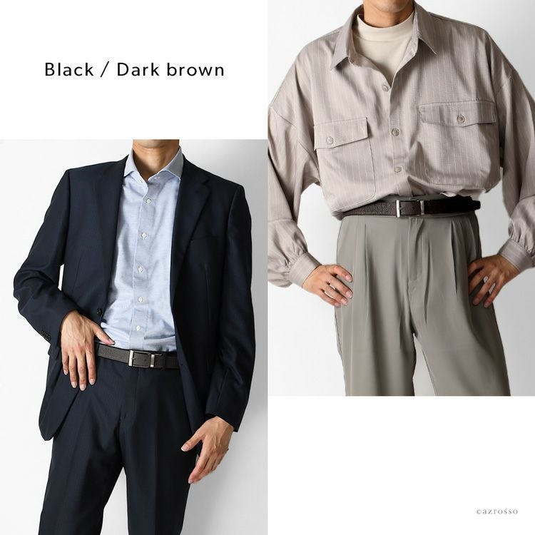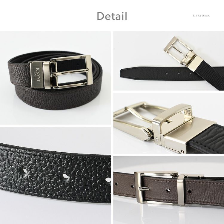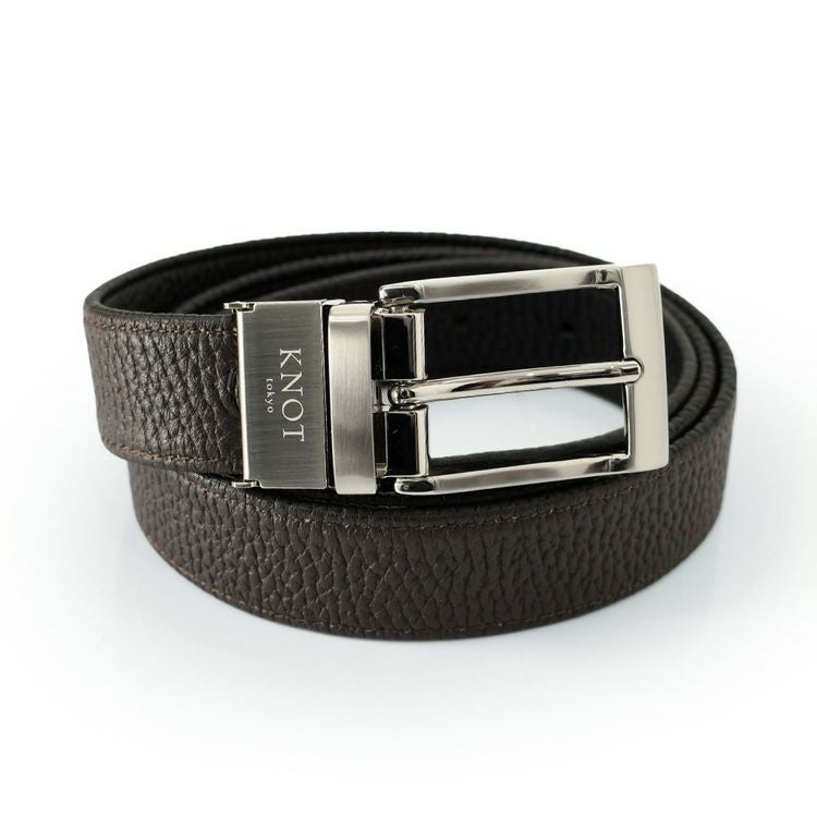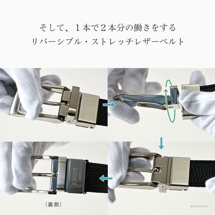 ストレッチ レザー ベルト リバーシブル 回転 バックル 日本製 本革 黒 ブラック ブラウン メンズ ノット KNOT