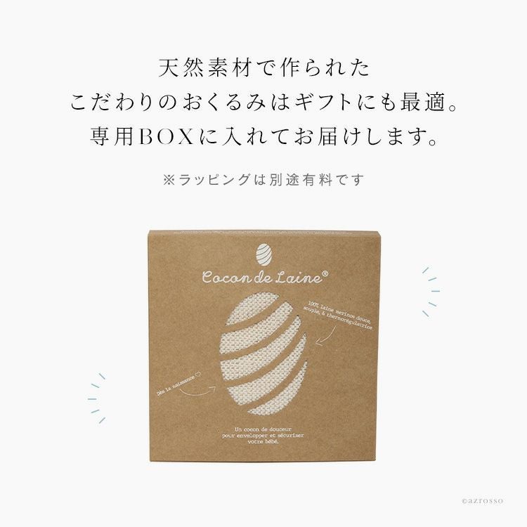 おくるみはコットン(綿)素材が一般的ですが、イラドは贅沢に上質なメリノウールを100%%用。