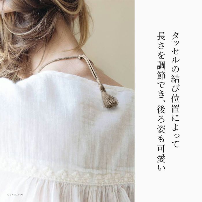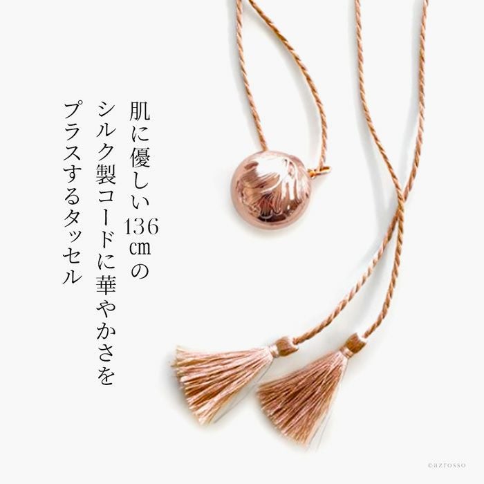 肌に優しい136cmのシルク製コードに3cmのタッセルが華やかさをプラス。