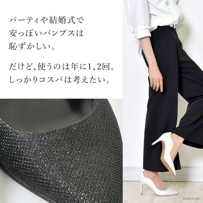 22cm-25cm|グリッター パンプス ハイヒール 8cm レディース 靴 ポインテッドトゥ スカラップ ラメ 黒 ブラック 白 アイボリー ホワイト ゴールド DANSI