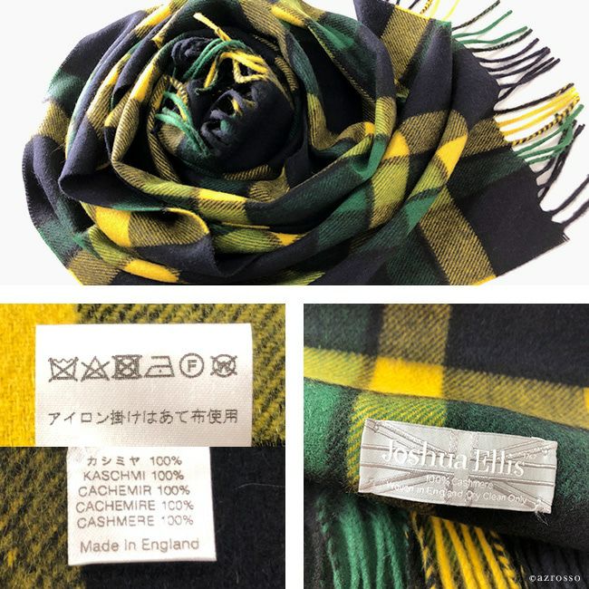 カシミア タータンチェック ストール 30×180 大判 レディース Joshua Ellis ジョシュアエリス グリーン イエロー