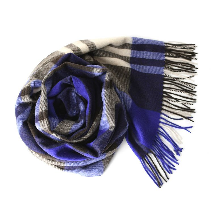カシミヤ ストール 大判 厚手 タータンチェック カシミア 100% カシミヤストール カシミアストール レディース ロング マフラー フリンジ ブルー 青 チェック柄 大きめ おしゃれ ちくちくしない