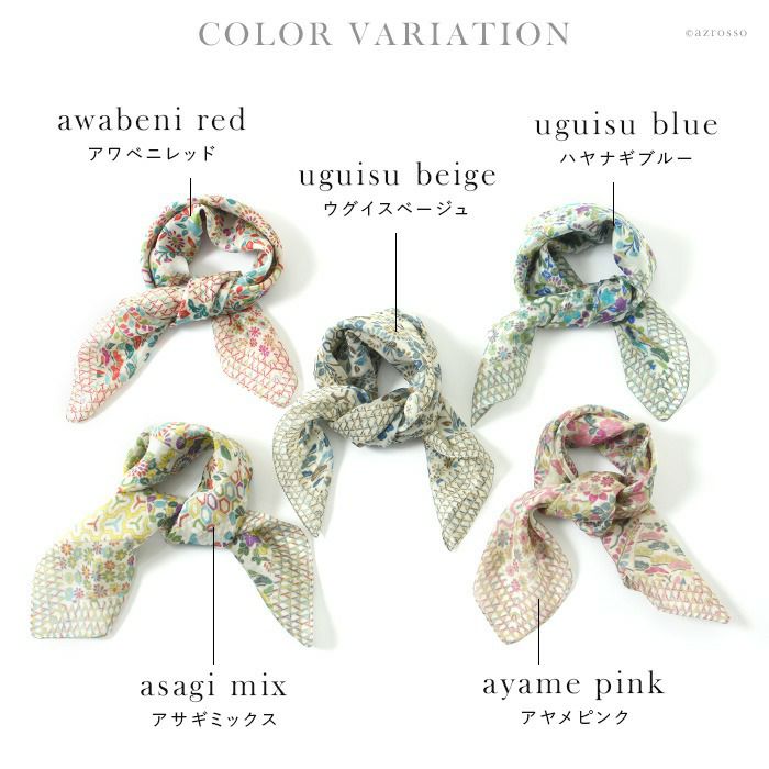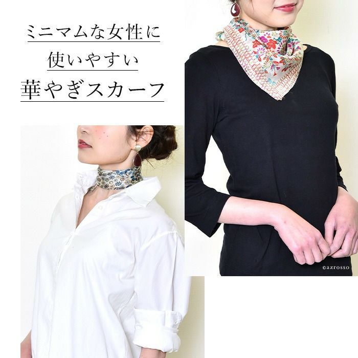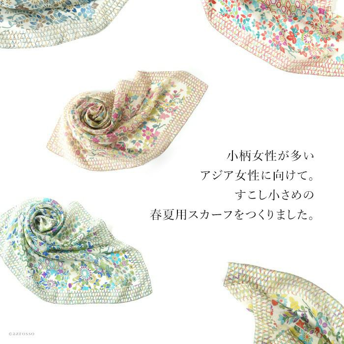 シルク100 ミニスカーフ 小さめ 薄手 プチスカーフ 春夏 COLORS DE OTONO