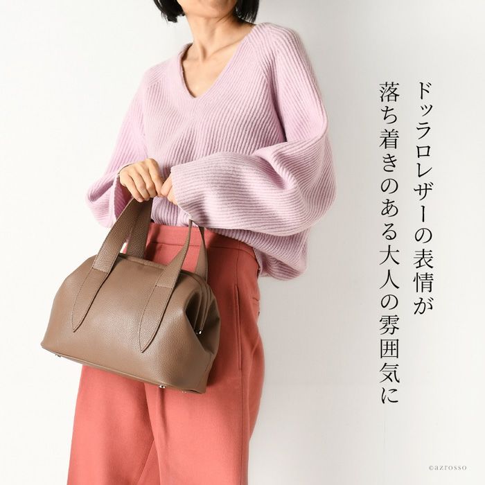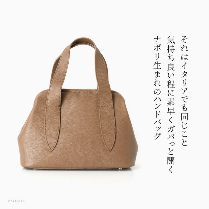 がま口 ハンドバッグ レザー ミニバッグ 2way ショルダーストラップ付き 本革 イタリア製 黒 ブラック トープ ベージュ